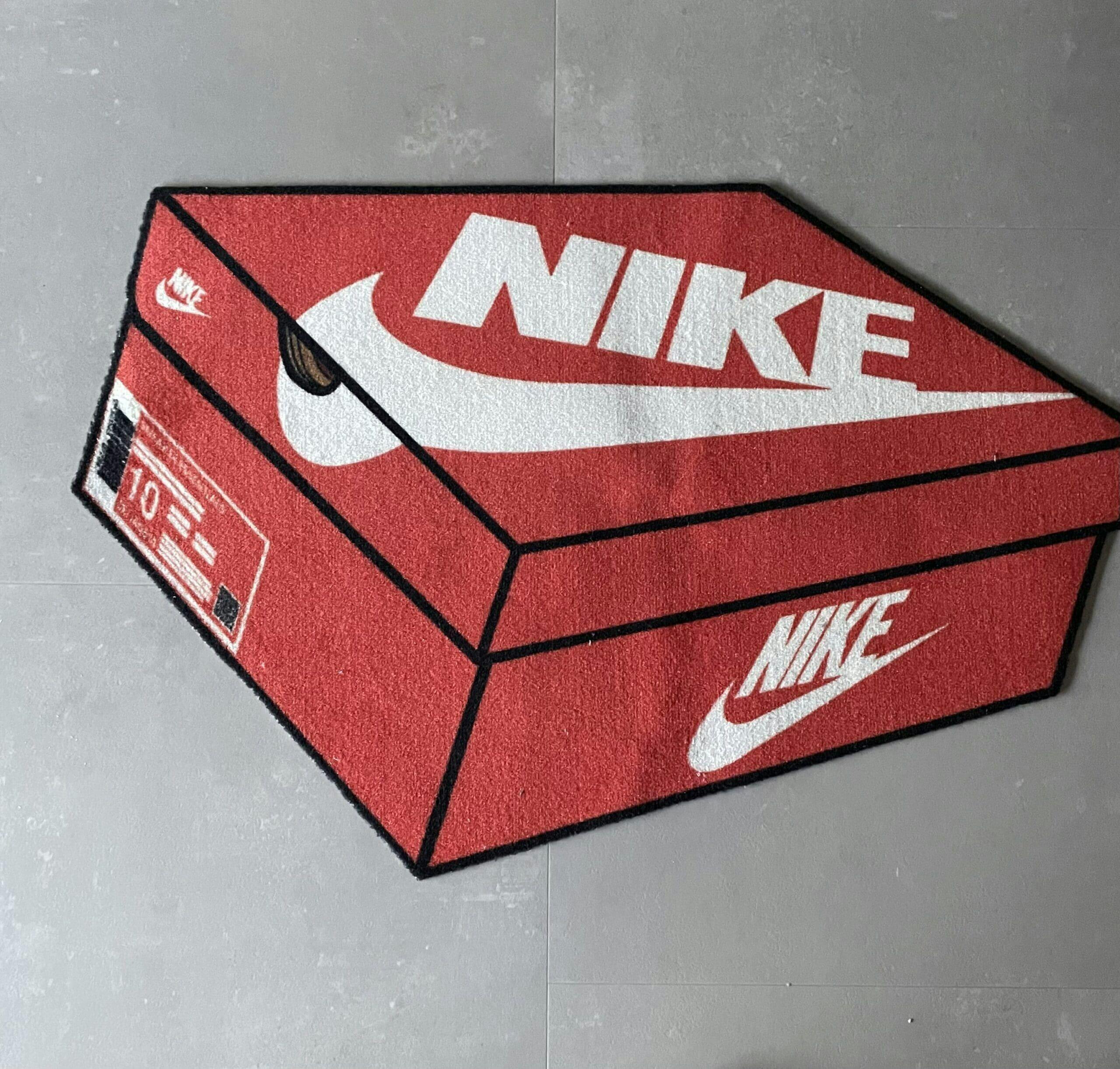 Der ausgeschnittene Teppich im wohl kultigsten Sneaker-Box-Design aller Zeiten, der originalen roten Nike-Sneaker-Box.