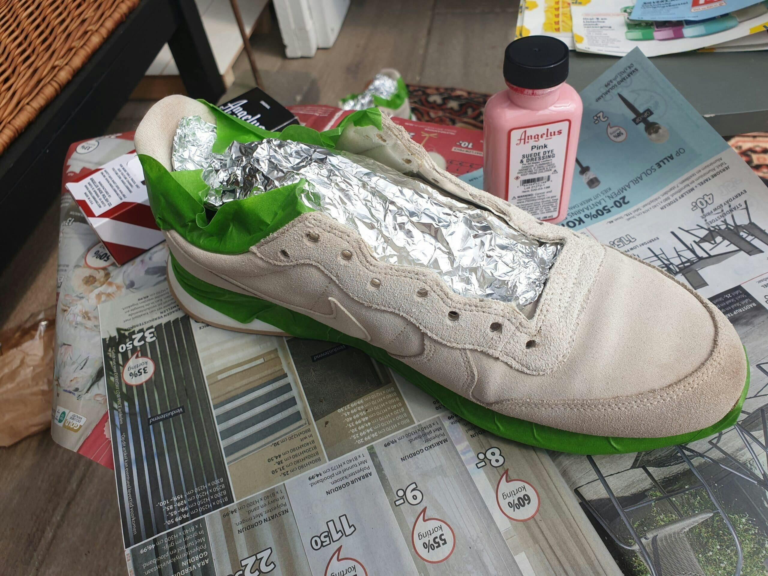Angelus Suede Dye won't crack or peel when prepared properly. Once completely dry, Angelus Suede Dye won't bleed.
